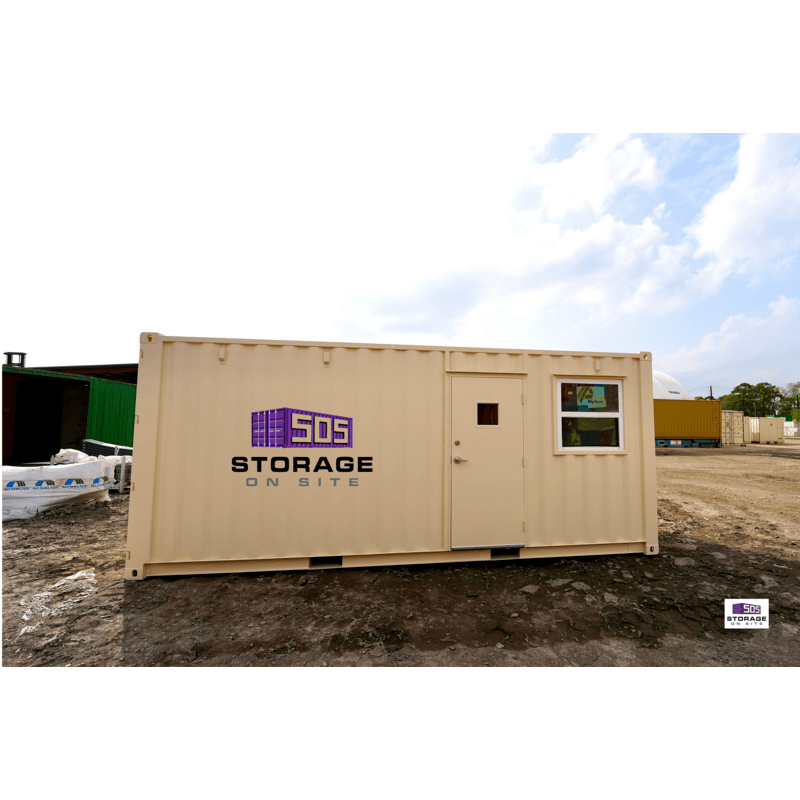 Our 20’ Combo Container Office and storage units are modified in our own production facility, in the U.S.A. It is made of high-quality Corten steel, fully weather-resistant. The office is built to be placed directly on the ground, for quick setup and eliminates the need for steps or ramps.