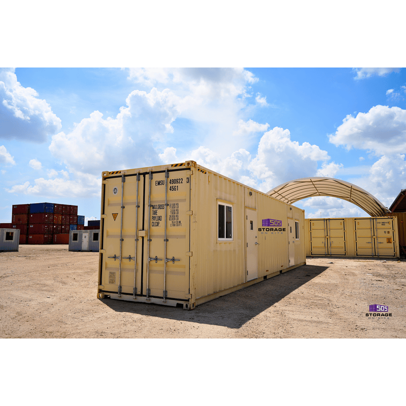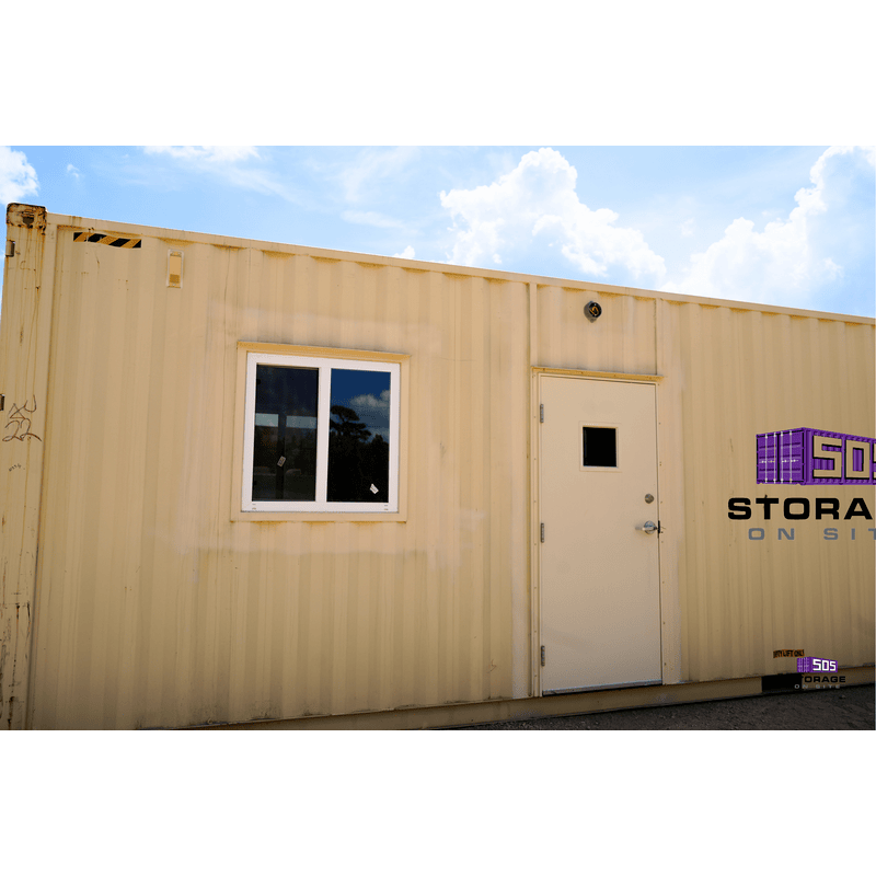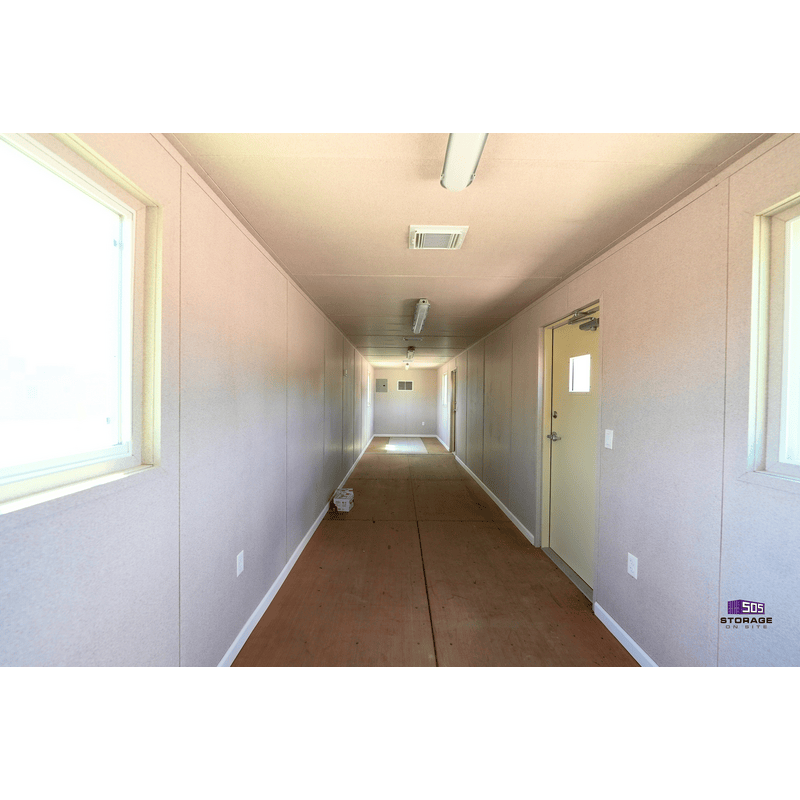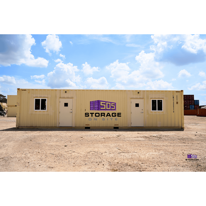 Our 40’ Office Container units are modified in our own production facility, in the U.S.A. It is made of high-quality Corten steel, fully weather-resistant. The office is built to be placed directly on the ground, for quick setup and eliminates the need for steps or ramps.